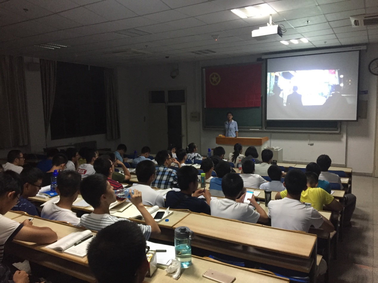 首先,由团支部副书记刘彦同学对学习方向和电影内容做出了简要的介绍。随后刘彦同学组织放映了电影《建军大业》。电影展现了中国共产党人在历史危急关头建立人民军队的过程。通过电影的讲述,同学们身临其境地感受了革命年代中国共产党艰苦奋斗的艰辛岁月。电影所展现的历史给予同学们以启示:当今的幸福生活来之不易,而身处美好时代的共青团员们,不应忘记革命先辈的付出,更应传承革命精神,树立远大志向,为社会主义建设贡献自己的力量。