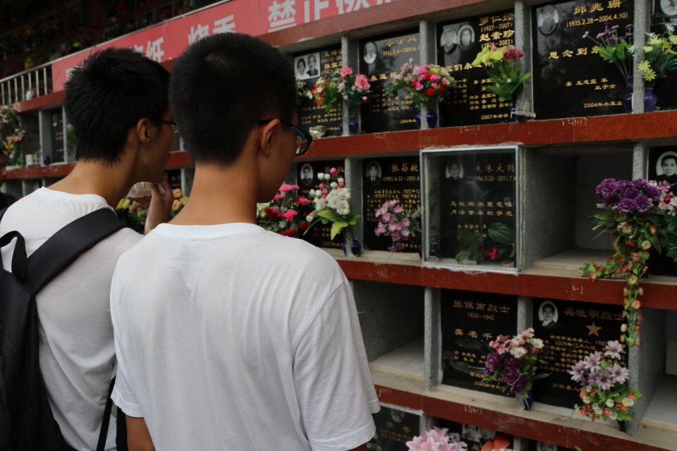 在烈士陵园的大型浮雕面前,支部团员们排成一列,整齐肃穆,分组依次上前献花。肃立、献花、鞠躬,简单的仪式背后蕴含着庄重与尊敬。凝神、静思,严肃的面孔之下,是真挚的情感。