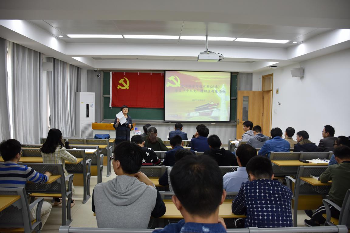 会议过程中,陈香老师首先带领大家回顾了十九大会议的重要议程,重温了十九大会议重要指示精神。陈香老师指出:十九大的主题是“不忘初心,牢记使命,高举中国特色社会主义伟大旗帜,决胜全面建成小康社会,夺取新时代中国特色社会主义伟大胜利,为实现中华民族伟大复兴的中国梦不懈奋斗”。不论是教师还是学生,都应该不忘初心,继续前行,既要增强改革创新本领,保持锐意进取的精神风貌,善于结合实际创造性推动工作,善于运用互联网技术和信息技术化手段开展工作;同时也要增强科学发展本领,善于贯彻新发展理念,不断开创发展教学和科研的新局面。并希望我系学生要坚定理想信念,志存高远,脚踏实地,勇做时代的弄潮儿,在科研和学习的道路上能创造出更加优异的成绩。